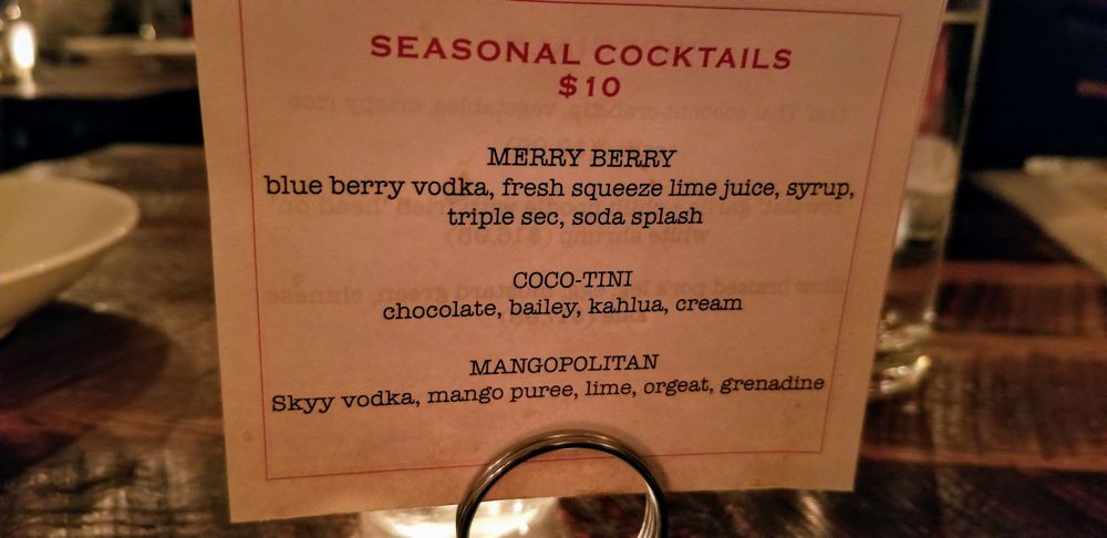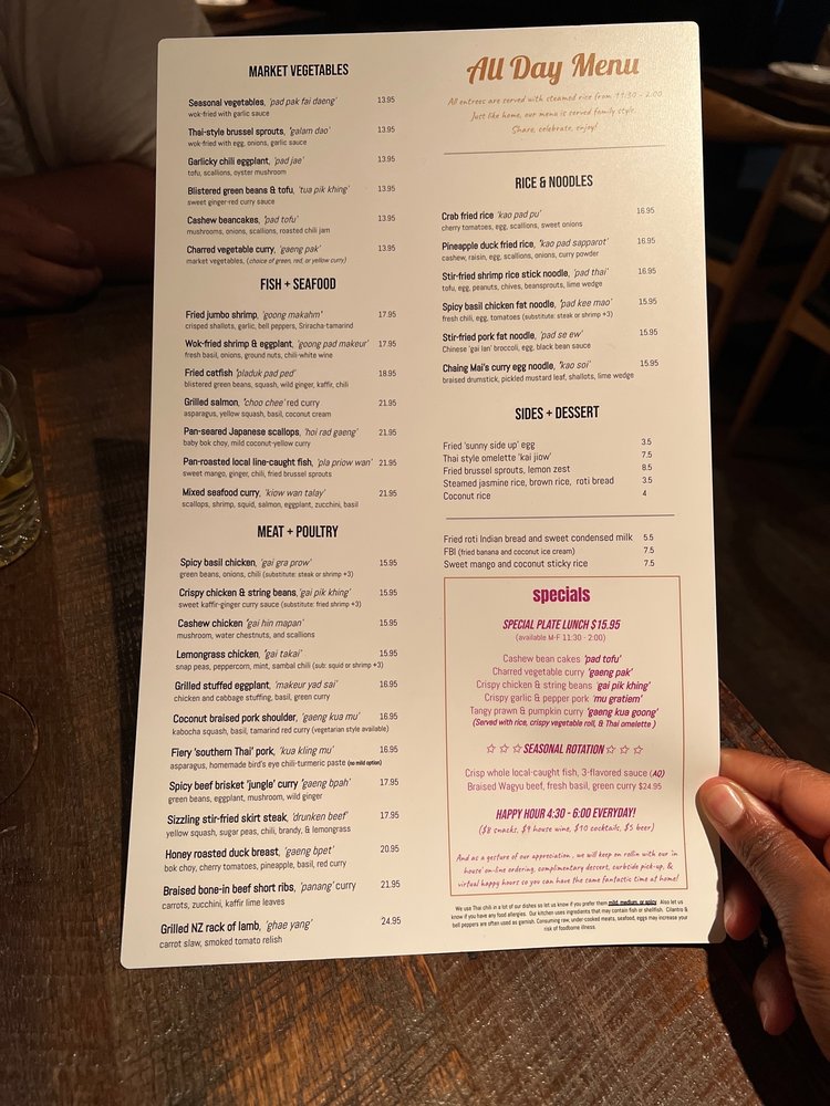 “ This is a delicious and special Thai restaurant. First of all it's nice enough to be great for a night out but casual too. They have *great* drinks and a full bar and just the best food. Love the coconut braised pork shoulder, all the noodles, crab meat wontons--really haven't had a bad dish. ”